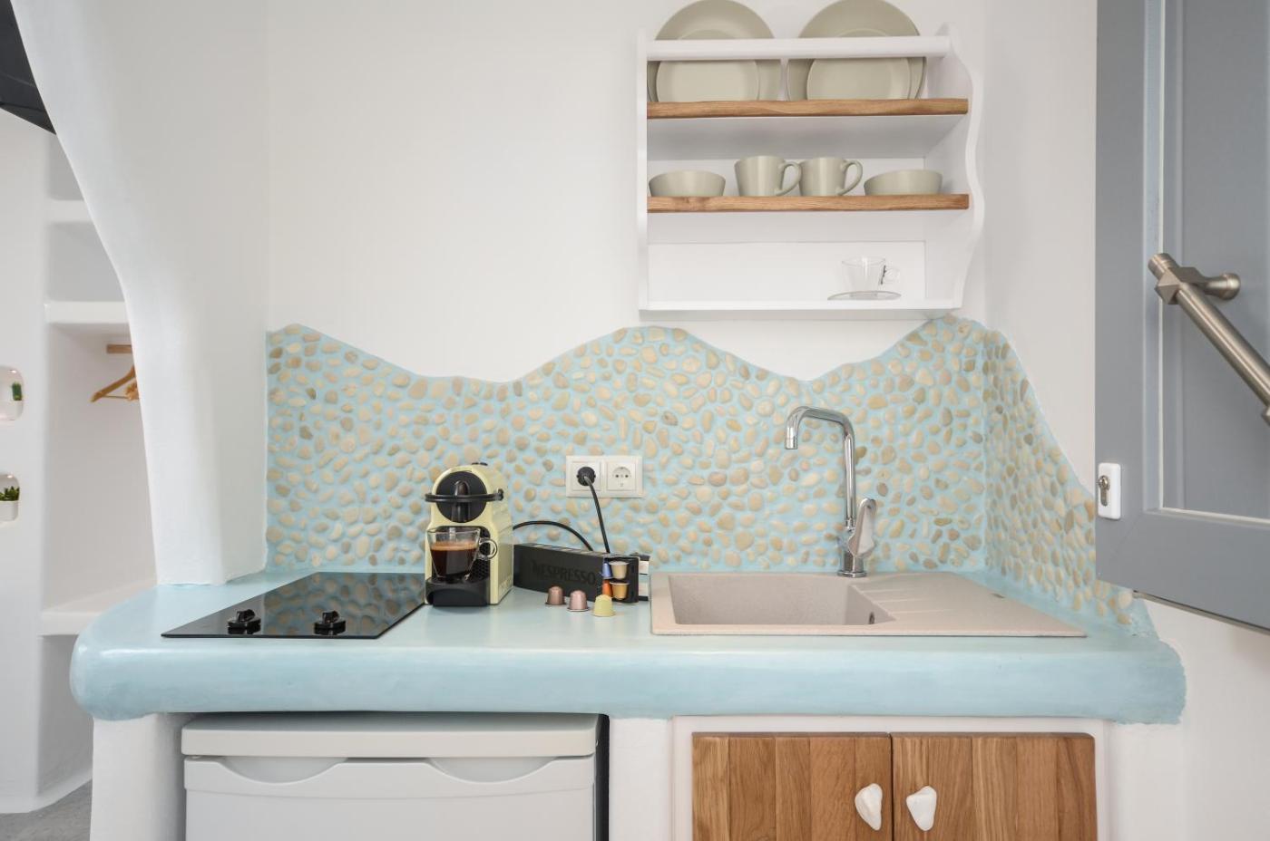 Junior Suite with Sea View. Featuring a private entrance, this air-conditioned suite consists of a kitchen, 1 bedroom and 1 bathroom with a walk-in shower and a hairdryer. Guests can make meals in the kitchen that is equipped with a stovetop, a refrigerator, kitchenware and a tea and coffee maker. Boasting a terrace with sea views, this suite also provides soundproof walls and a flat-screen TV. The unit offers 1 bed. ;