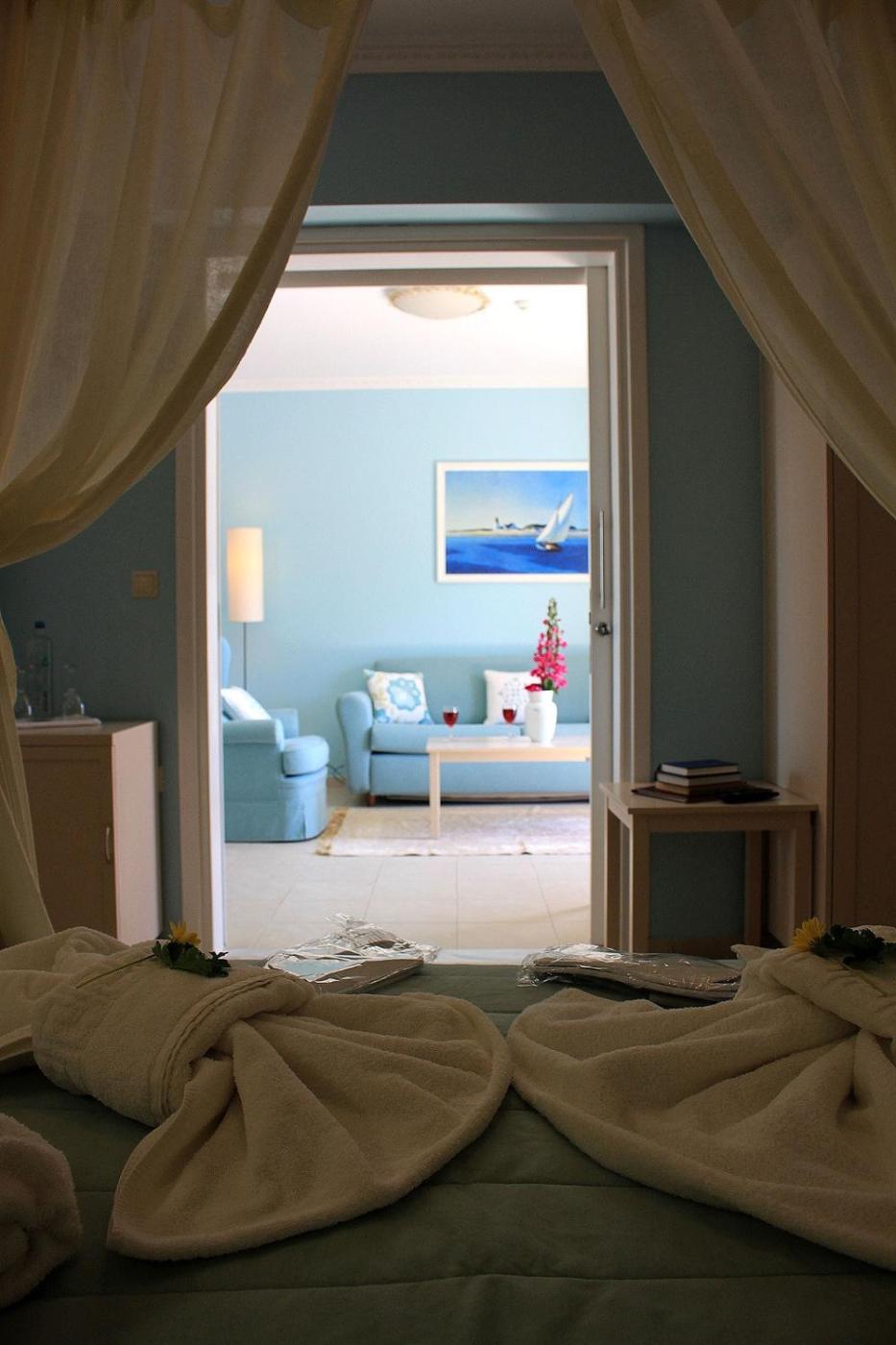 Executive Suite. Luxurious boutique-style suite with partial sea view, lounge and separate bedroom. Located on the ground floor in the second building with sun loungers, table and chairs on the spacious balcony. Please note that this room type cannot accommodate an extra bed. Please note thatunits are non smoking. Smoking is only allowed at the outside and public areas. ;