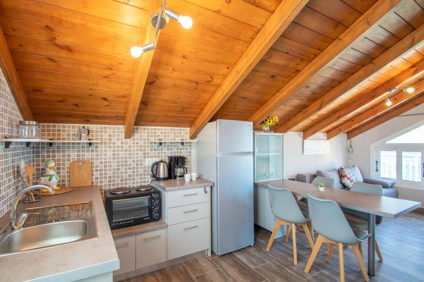 One-Bedroom Apartment. The air-conditioned apartment features 1 bedroom and 1 bathroom with a shower and a hairdryer. Guests will find a stovetop, a refrigerator, kitchenware and an oven in the well-fitted kitchenette. The apartment also provides guests with a barbecue. Featuring a balcony with sea views, this apartment also provides a coffee machine and a flat-screen TV. The unit offers 1 bed.