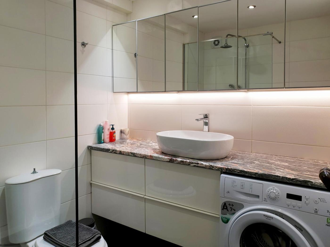 Three-Bedroom Apartment. This spacious apartment comprises 1 living room, 3 separate bedrooms and 1 bathroom with a shower and free toiletries. The well-fitted kitchen features a stovetop, a refrigerator, kitchenware and an oven. This air-conditioned apartment includes a dining area, a flat-screen TV with streaming services a washing machine and a balcony. The unit offers 4 beds.