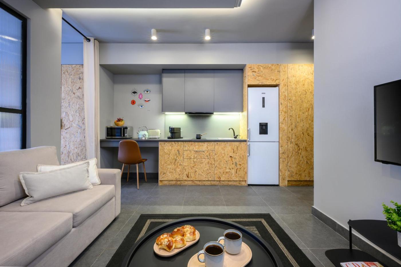 One-Bedroom Apartment. This apartment is comprised of 1 living room, 1 separate bedroom and 1 bathroom with a walk-in shower and free toiletries. The well-equipped kitchen features a stovetop, a refrigerator and kitchenware. The air-conditioned apartment offers a flat-screen TV, a tea and coffee maker, a seating area, a dining area as well as city views. The unit offers 2 beds. ;