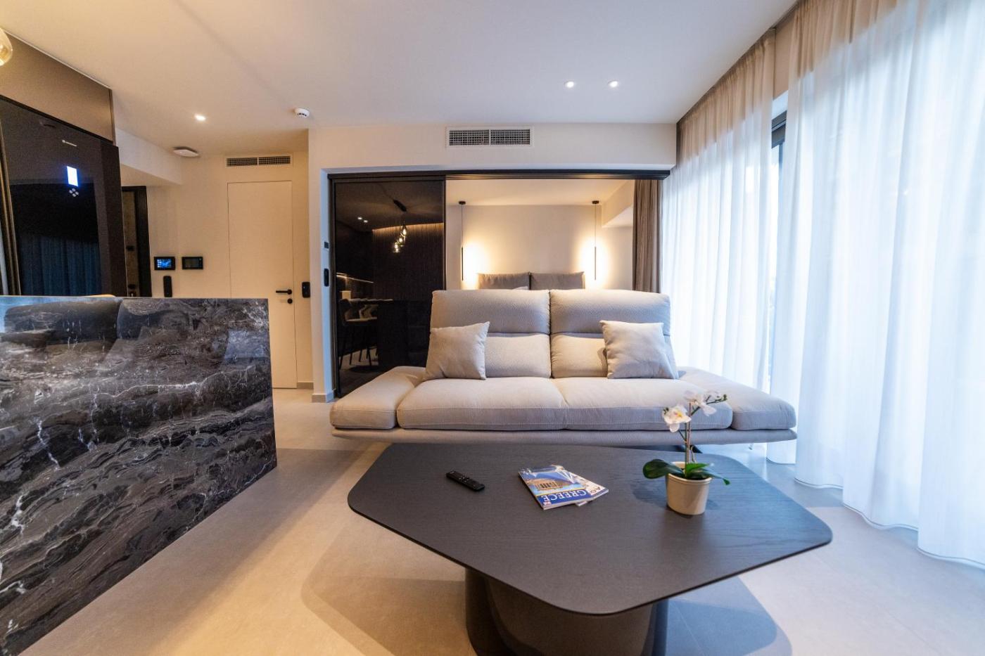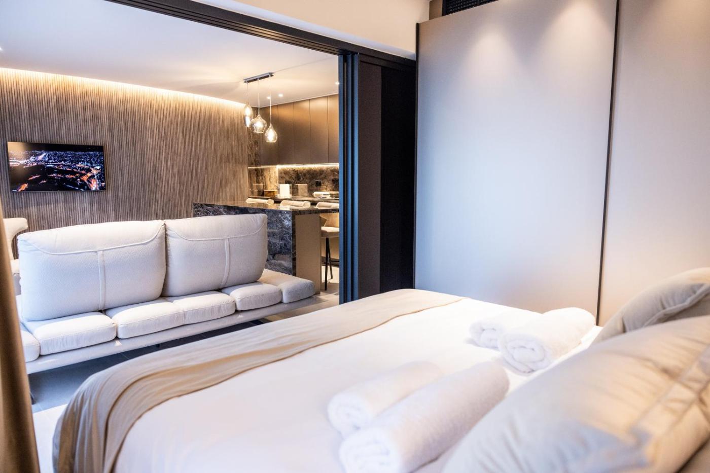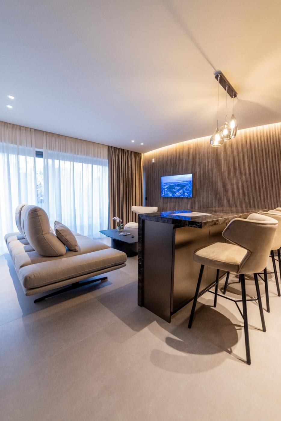 Superior One-Bedroom Apartment. The sauna is a top feature of this apartment. Boasting a private entrance, this air-conditioned apartment comes with 1 living room, 1 separate bedroom and 1 bathroom with a walk-in shower and a bath or a shower. Guests can make meals in the kitchen that features a stovetop, a refrigerator, a dishwasher and kitchenware. Featuring a terrace with city views, this apartment also features a washing machine and a flat-screen TV with satellite channels. The unit has 2 beds.