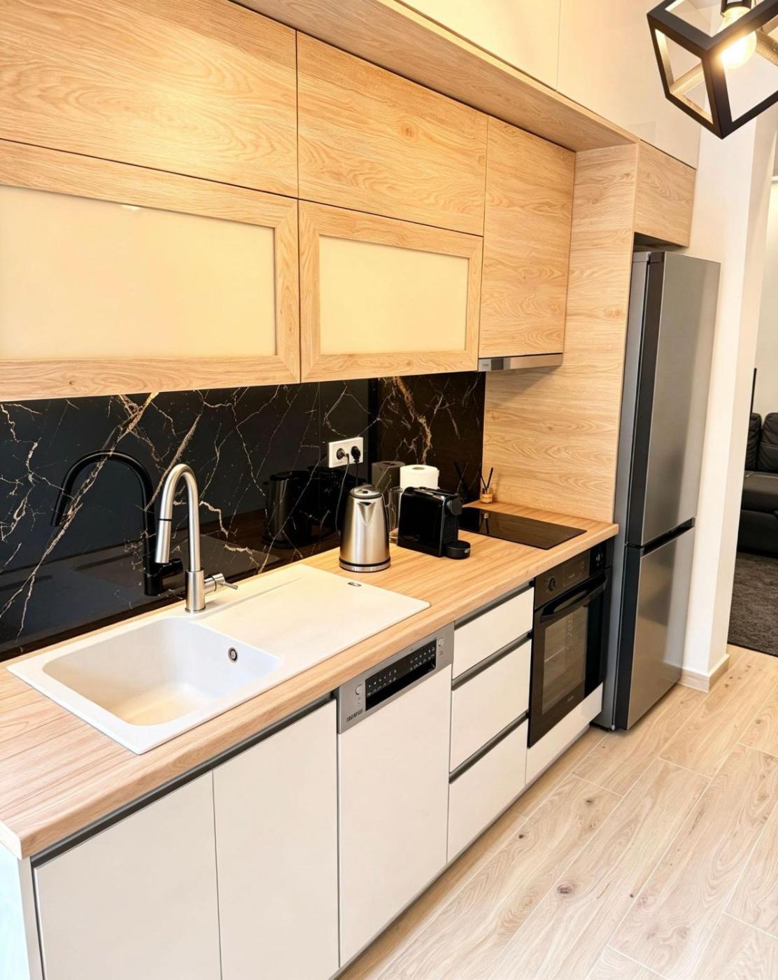 One-Bedroom Apartment. Featuring a private entrance, this air-conditioned apartment comprises 1 living room, 1 separate bedroom and 1 bathroom with a walk-in shower and a hairdryer. Meals can be prepared in the well-fitted kitchen, which is equipped with a stovetop, a refrigerator, a dishwasher and kitchenware. Boasting a balcony with city views, this apartment also provides a washing machine and a flat-screen TV. The unit offers 2 beds.