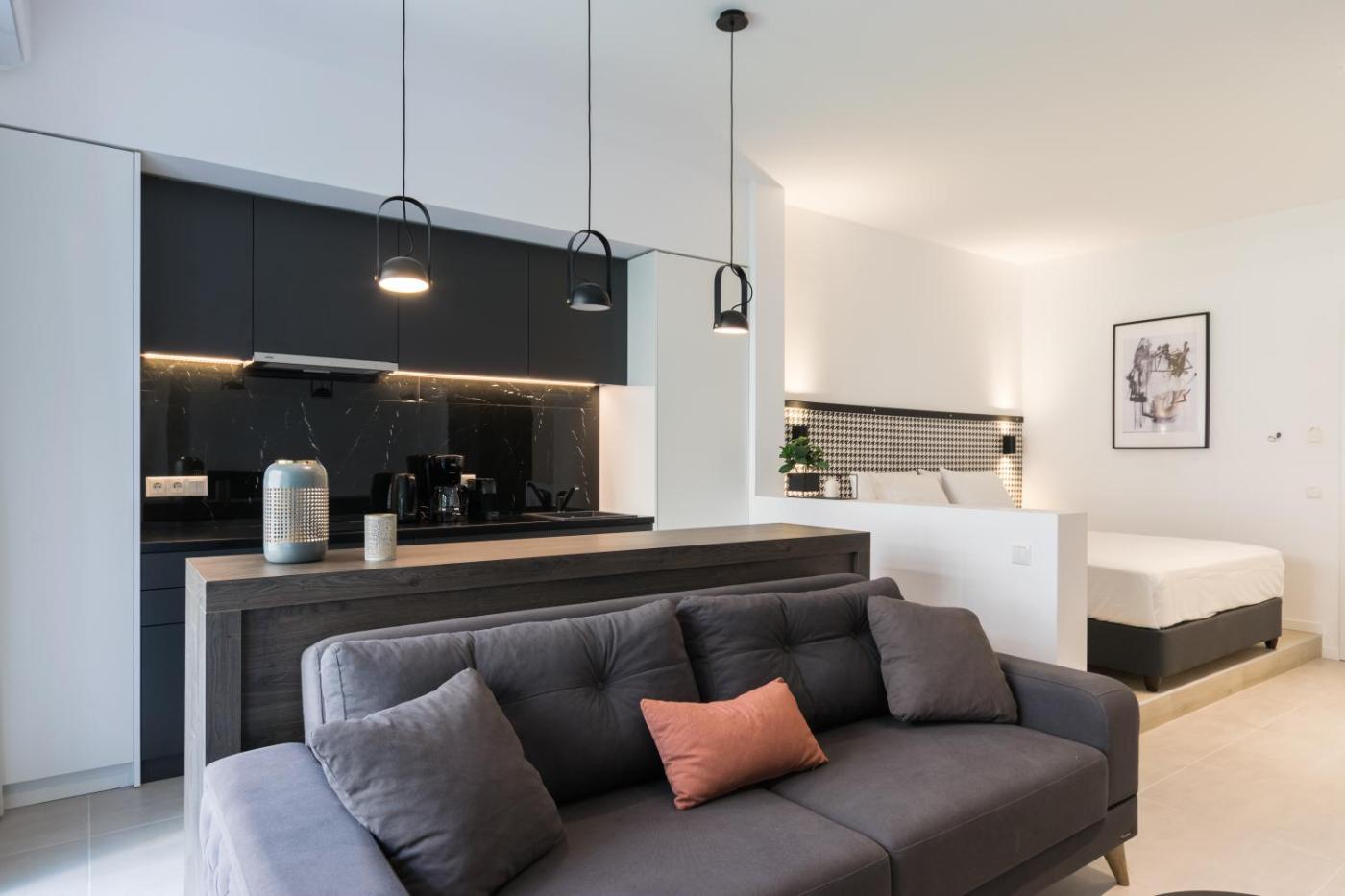 One-Bedroom Apartment. This air-conditioned apartment includes 1 living room, 1 separate bedroom and 1 bathroom with a shower. The well-equipped kitchen has a stovetop, a refrigerator, kitchenware and a microwave. Boasting a balcony with city views, this apartment also offers a tea and coffee maker and a flat-screen TV. The unit has 2 beds.
