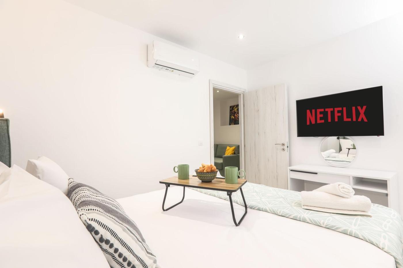 Superior One-Bedroom Apartment. This apartment comes with 1 living room, 1 separate bedroom and 1 bathroom with a shower and free toiletries. Guests can make meals in the kitchen that features a stovetop, a refrigerator, kitchenware and an oven. The apartment features air conditioning, a washing machine, soundproof walls, a tea and coffee maker and a flat-screen TV with streaming services. The unit has 2 beds. ;