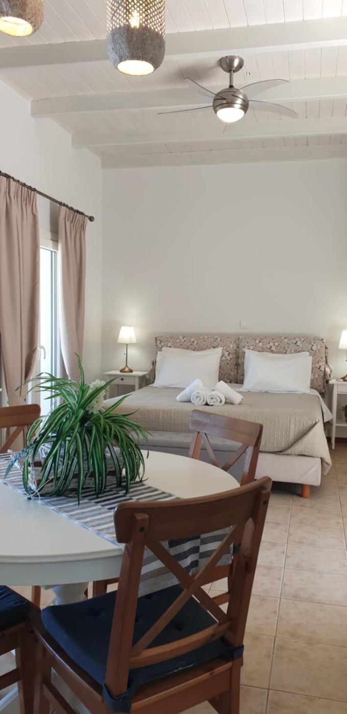 Deluxe Suite with Sea View. Surrounded by a private, green garden, this studio has is only a few steps from the beach. Offers an open space with seating area, kitchen area separated by a counter and a king-size bed. Features a garden and balcony for sunbathing with view to the Ionian sea. Includes sunbeds, outdoor table, BBQ facilities and on-site parking. Please note that the 3rd guest is accommodated in extra bed. Please note that this room type is independent. ;