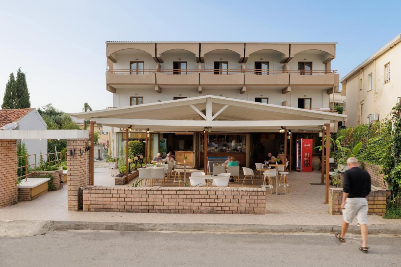 Facing the beachfront, Louvre Hotel offers 3-star accommodation in Gouvia and has an outdoor swimming pool, garden and shared lounge. 200 metres from Gouvia Beach and 7.3 km from Port of Corfu, the property features a terrace and a bar. The property is non-smoking and is situated 8 km from New Fortress.