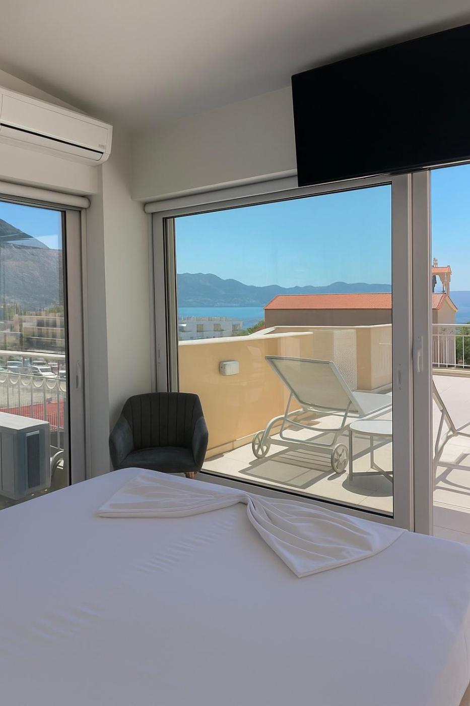 One-Bedroom Apartment. Featuring a private entrance, this air-conditioned apartment consists of a kitchen, 1 bedroom and 1 bathroom with a walk-in shower and a hairdryer. The fully equipped kitchen features a stovetop, a refrigerator, kitchenware and an oven. Boasting a terrace with sea views, this apartment also provides soundproof walls and a flat-screen TV with streaming services. The unit offers 1 bed.
