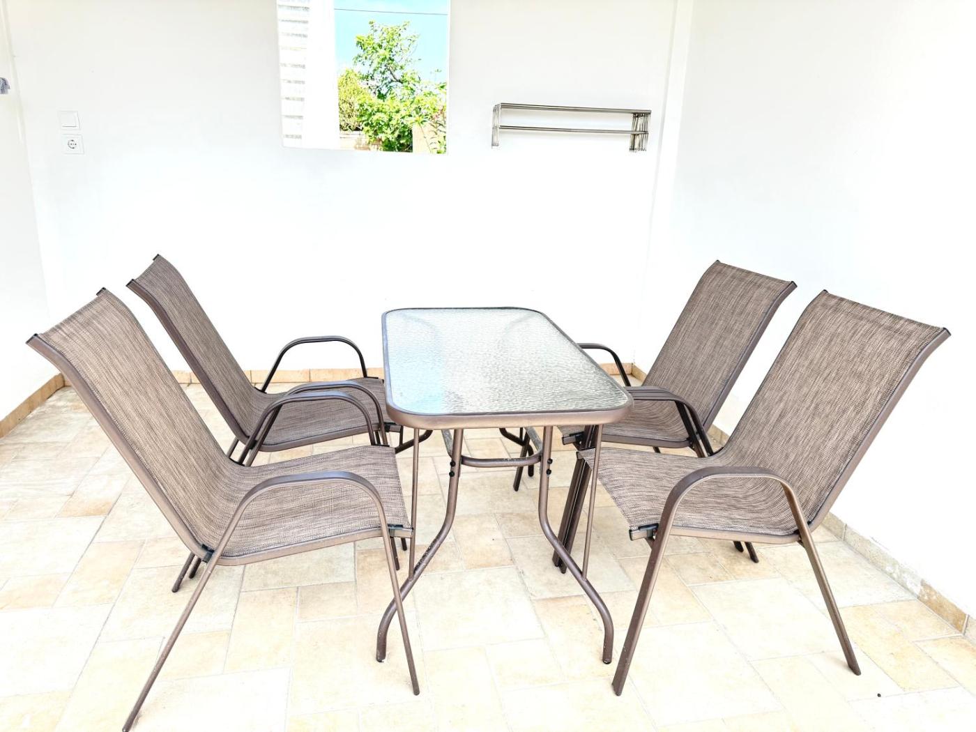Two-Bedroom Apartment with Balcony and Terrace. Featuring a private entrance, this air-conditioned apartment comprises 1 living room, 2 separate bedrooms and 1 bathroom with a shower and a hairdryer. Meals can be prepared in the well-fitted kitchen, which comes with a stovetop, a refrigerator and kitchenware. Boasting a terrace with city views, this apartment also provides a tea and coffee maker and a flat-screen TV. The unit offers 3 beds.