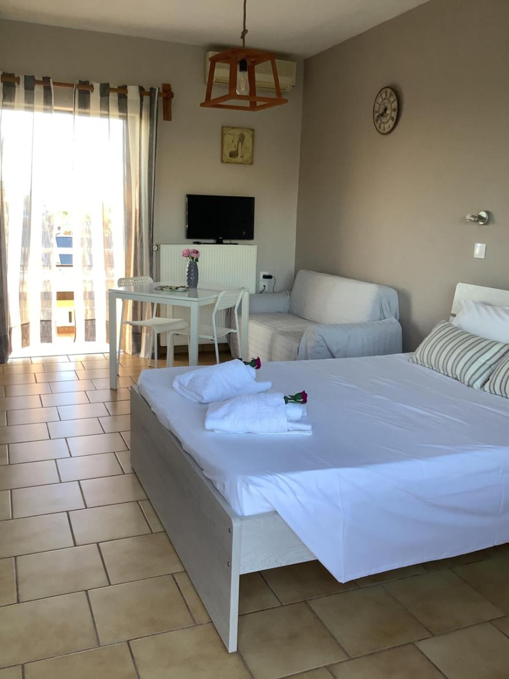 Studio Apartment with Sea View. Featuring a private entrance, this air-conditioned apartment comprises 1 living room, 1 separate bedroom and 1 bathroom with a shower and a hairdryer. Meals can be prepared in the well-fitted kitchen, which comes with a stovetop, a refrigerator, kitchenware and a tea and coffee maker. Boasting a balcony with sea views, this apartment also provides soundproof walls and a flat-screen TV with cable channels. The unit offers 2 beds.