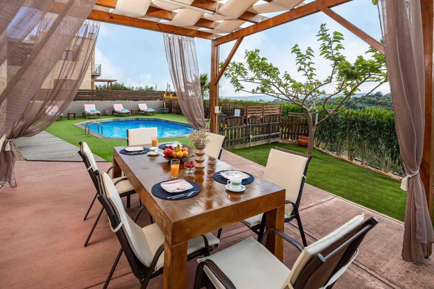 Guests can enjoy the outdoor swimming pool at the villa.