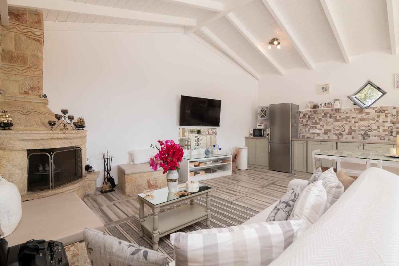 Villa. The private pool and fireplace are the standout features of this villa. Boasting a private entrance, this air-conditioned villa comes with 1 living room, 3 separate bedrooms and 2 bathrooms with a shower and a hairdryer. Meals can be prepared in the well-fitted kitchen, which features a stovetop, a refrigerator, a dishwasher and kitchenware. The villa features a washing machine, a tea and coffee maker, a seating area, a flat-screen TV with streaming services, as well as sea views. The unit has 6 beds.