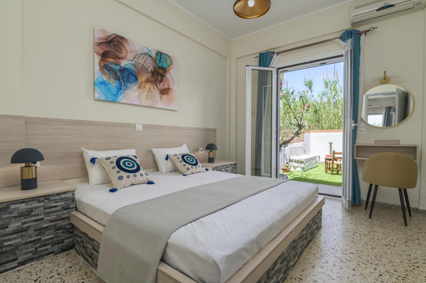 One-Bedroom Apartment. This apartment comprises 1 living room, 1 separate bedroom and 1 bathroom with a shower and free toiletries. Meals can be prepared in the kitchenette, which comes with a stovetop, a refrigerator, kitchenware and a microwave. This apartment features air conditioning, flat-screen TV, sea views, as well as fruit for guests. The unit offers 3 beds.