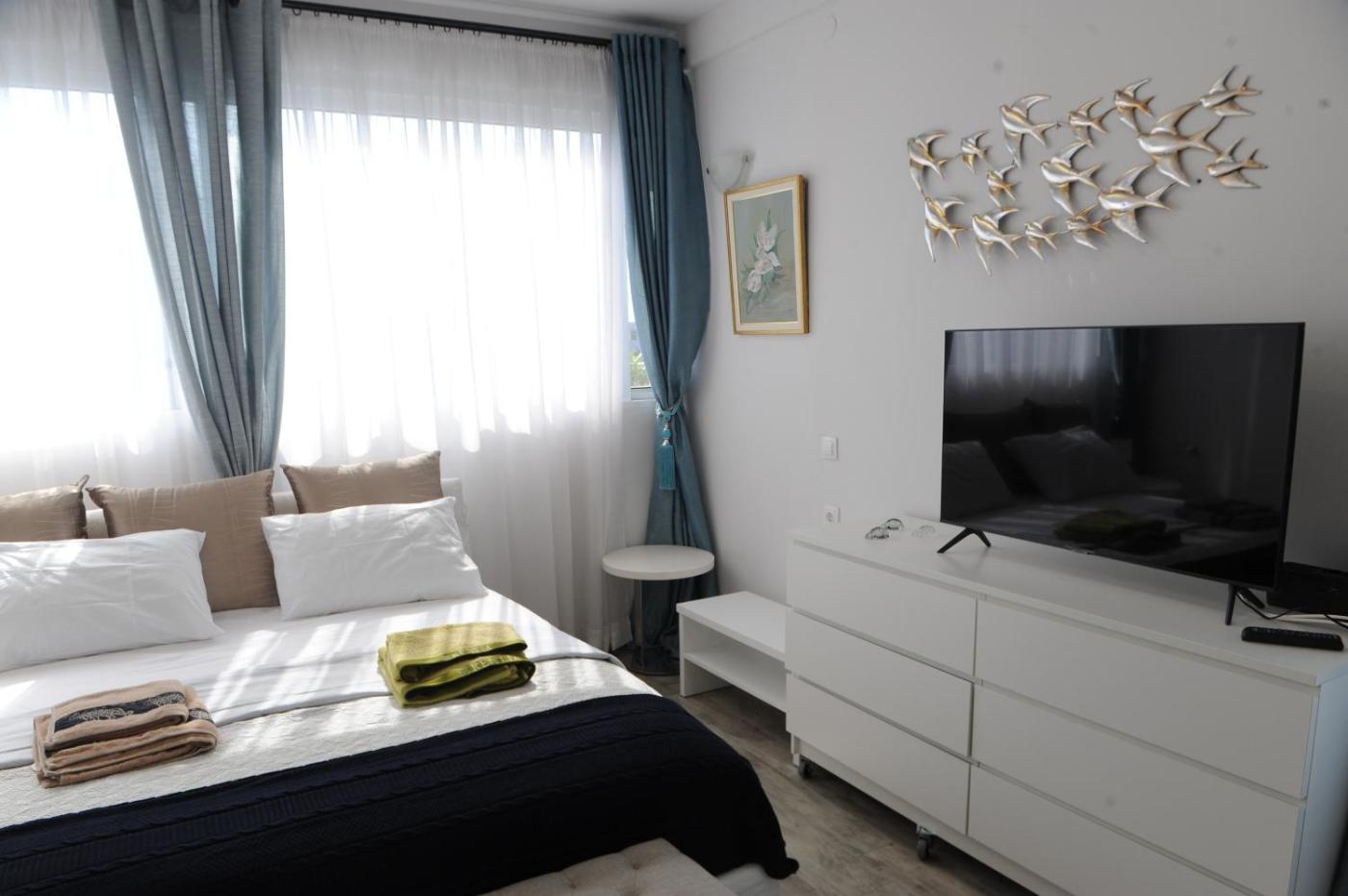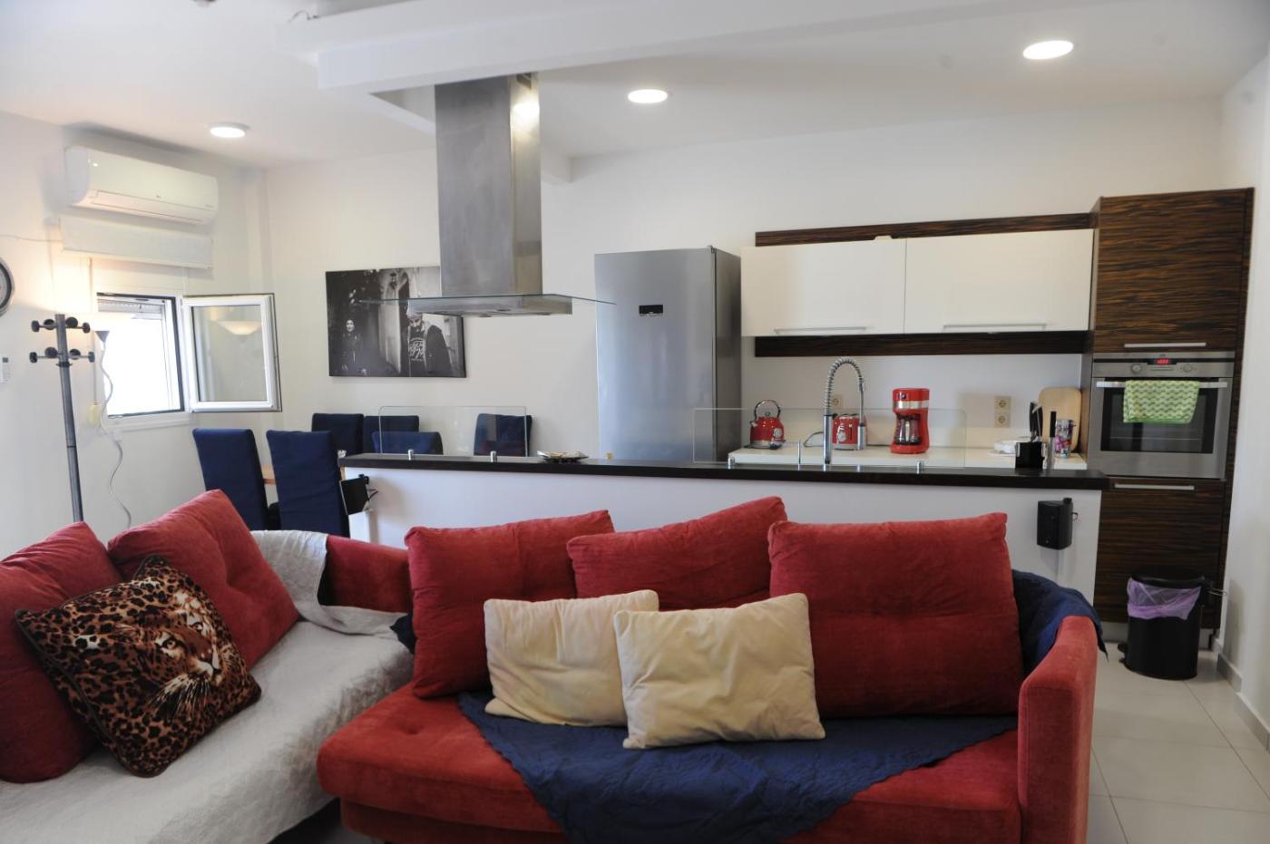 Two-Bedroom Apartment. Boasting a private entrance, this air-conditioned apartment features 1 living room, 2 separate bedrooms and 2 bathrooms with a walk-in shower and a bath. Guests will find a stovetop, a refrigerator, a dishwasher and kitchenware in the well-equipped kitchen. The apartment also comes with a barbecue. The spacious apartment features a flat-screen TV with streaming services, a washing machine, soundproof walls, a tea and coffee maker as well as sea views. The unit has 5 beds.