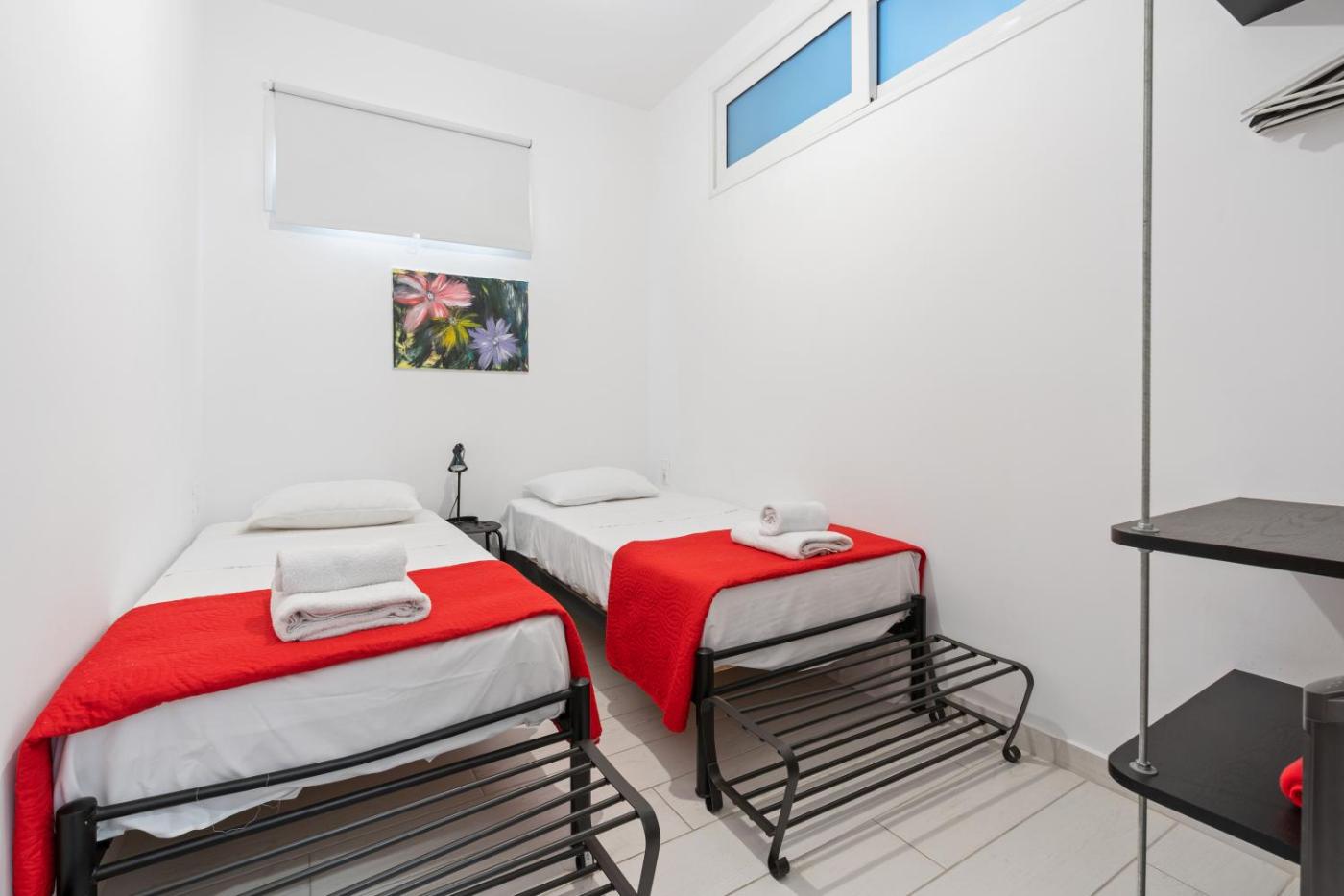 Four-Bedroom Apartment. Boasting a private entrance, this air-conditioned apartment comes with 1 living room, 4 separate bedrooms and 2 bathrooms with a bath and a shower. In the well-equipped kitchen, guests will find a stovetop, a refrigerator, kitchenware and an oven. A seating area with a flat-screen TV, soundproof walls and a balcony are available in this spacious apartment. The unit has 7 beds.