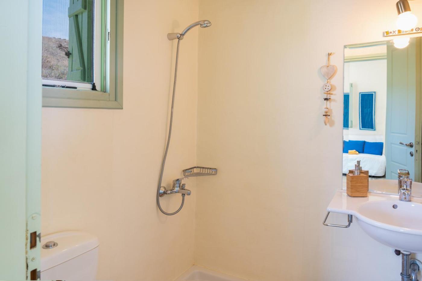 Two-Bedroom House. This holiday homes standout feature is the fireplace. Featuring a private entrance, this air-conditioned holiday home is comprised of a kitchen, 2 bedrooms and 2 bathrooms with a shower and a hairdryer. In the well-equipped kitchen, guests will find kitchenware, an oven, a microwave and an electric kettle. Boasting a terrace with sea views, this holiday home also offers a washing machine and a TV. The unit offers 4 beds.
