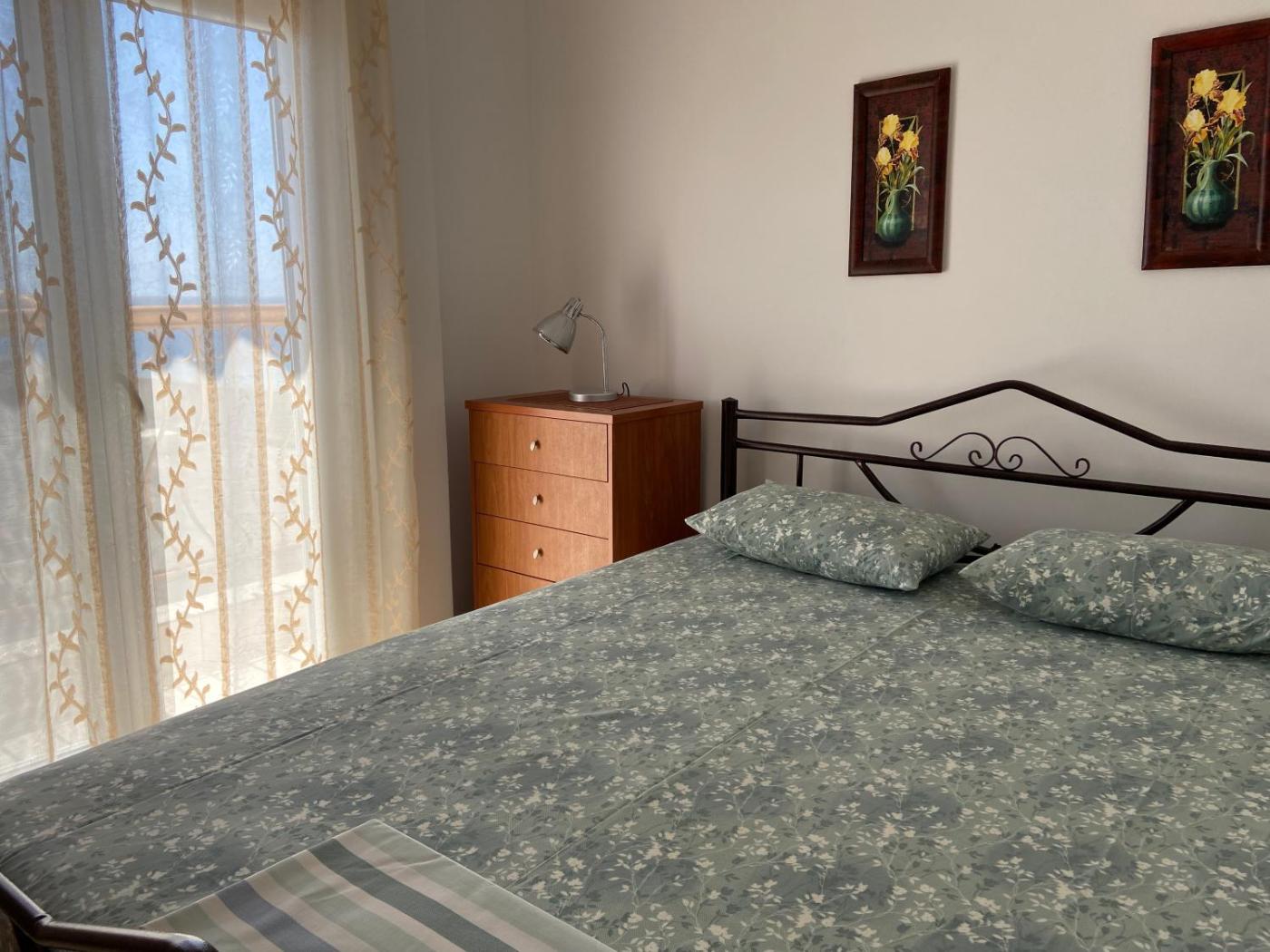 Two-Bedroom Apartment with Sea View. Boasting a private entrance, this air-conditioned apartment features 1 living room, 2 separate bedrooms and 1 bathroom with a shower and a hairdryer. Guests can make meals in the kitchenette that features a stovetop, a refrigerator, kitchenware and an electric kettle. Featuring a balcony with sea views, this apartment also features a washing machine and a flat-screen TV. The unit has 3 beds.