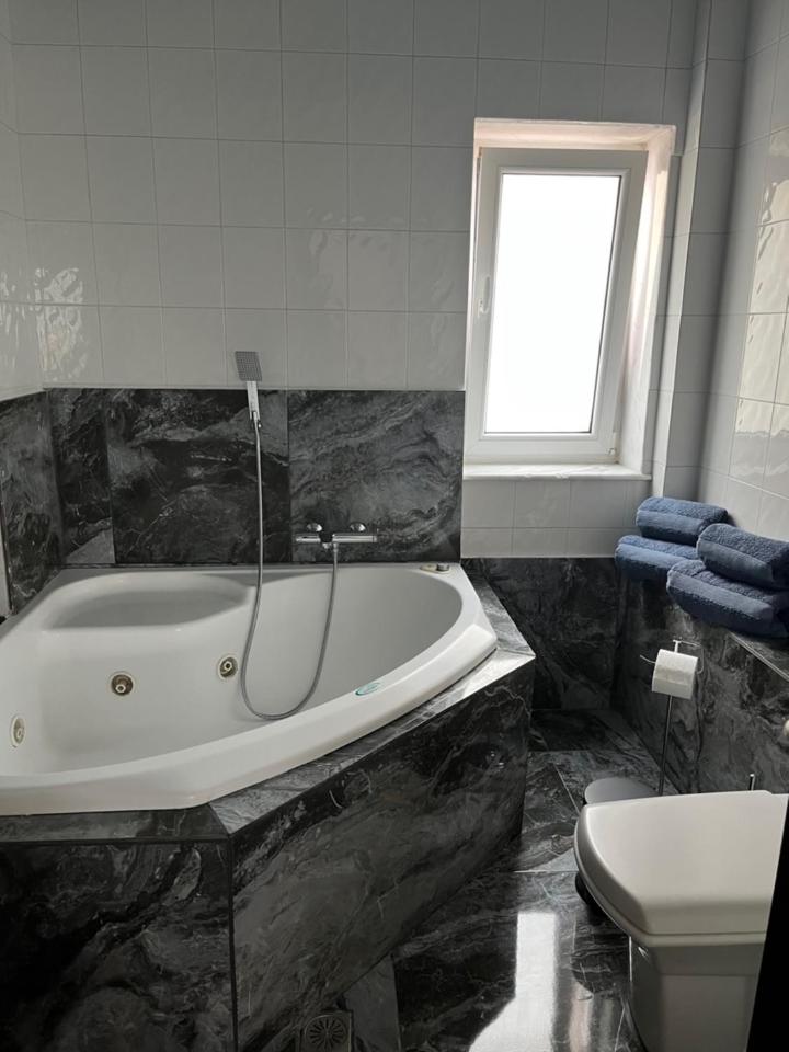 Three-Bedroom Apartment. The hot tub and spa bath are the special features of this apartment. In the well-fitted kitchen, guests will find a stovetop, a refrigerator, kitchenware and an oven. The spacious air-conditioned apartment features a flat-screen TV, a washing machine, a tea and coffee maker, a seating area as well as sea views. The unit has 4 beds.