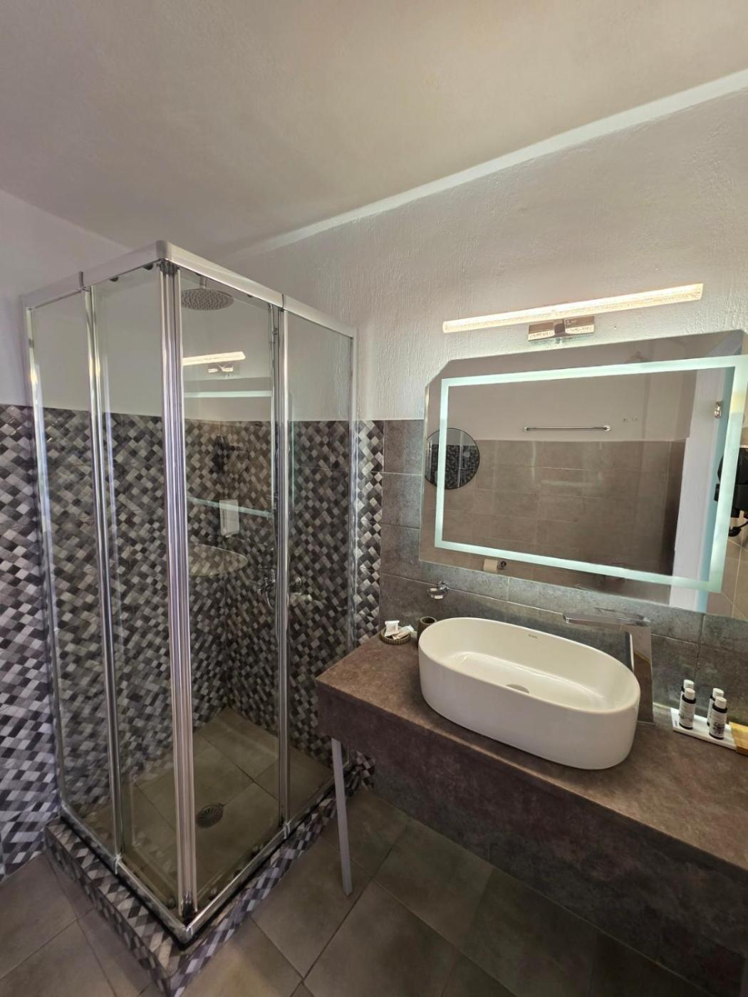 Double Room with Spa Bath. This double room features a hot tub. The fully equipped kitchenette features a stovetop, a refrigerator and kitchenware. The double room provides air conditioning, a tea and coffee maker, a terrace with sea views as well as a private bathroom featuring a shower. The unit offers 1 bed. ;