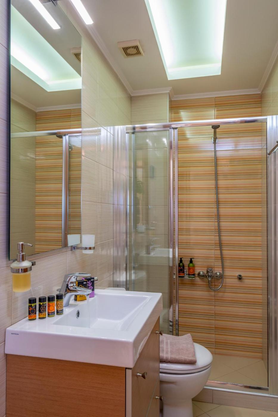 Three-Bedroom Apartment. Boasting a private entrance, this air-conditioned apartment features 1 living room, 3 separate bedrooms and 3 bathrooms with a walk-in shower and a bath. In the kitchen, guests will find a stovetop, a refrigerator, a dishwasher and kitchenware. The spacious apartment features a flat-screen TV with satellite channels, a washing machine, soundproof walls, a minibar as well as sea views. The unit has 4 beds.