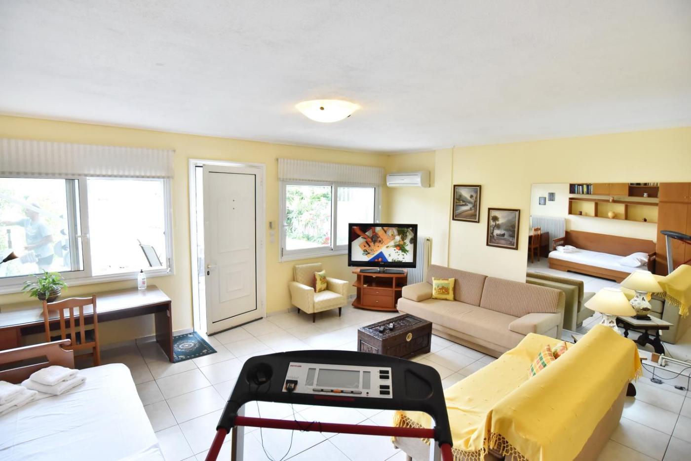 Apartment. Boasting a private entrance, this air-conditioned apartment includes 1 bedroom and 1 bathroom with a bath. The apartments kitchenette is available for cooking and storing food. The apartment has tiled floors, a seating area with a flat-screen TV, a wardrobe, a sofa, as well as heating. The unit has 4 beds.