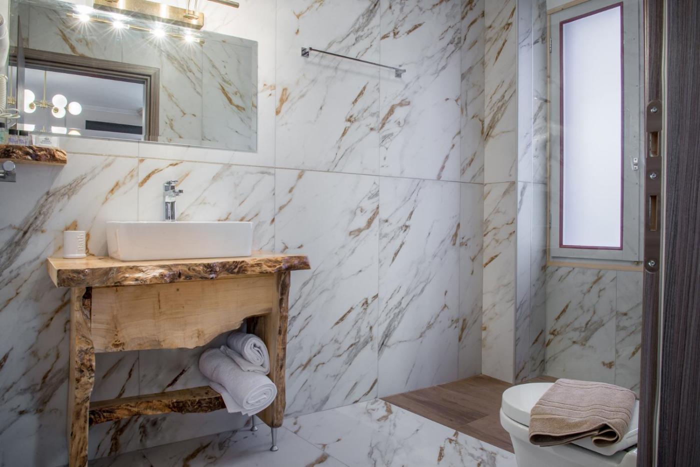 Deluxe Suite with Sea View. The air-conditioned suite features 1 bedroom and 1 bathroom with a shower and a hairdryer. The well-fitted kitchen has a stovetop, a refrigerator, kitchenware and a microwave. Featuring a terrace with sea views, this suite also offers soundproof walls and a flat-screen TV with satellite channels. The unit offers 1 bed. ;