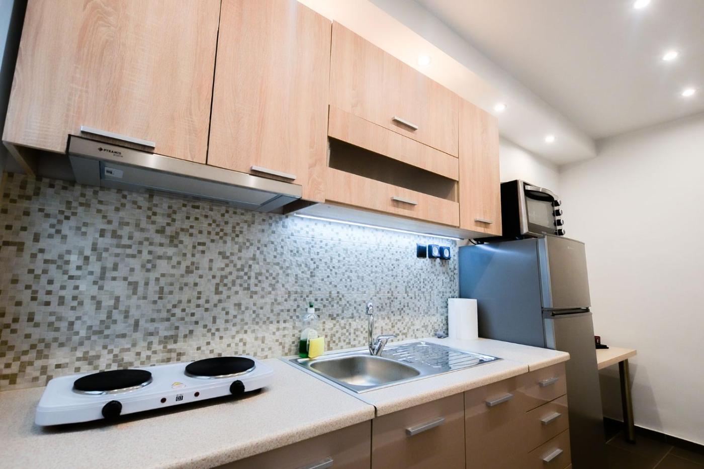 One-Bedroom Apartment. Featuring a private entrance, this air-conditioned apartment is comprised of a kitchenette, 1 bedroom and 1 bathroom with a walk-in shower and a hairdryer. Guests can make meals in the kitchenette that is fitted with a stovetop, a refrigerator, kitchenware and an oven. This apartment features soundproof walls, a tea and coffee maker, a flat-screen TV and a terrace. The unit offers 2 beds.