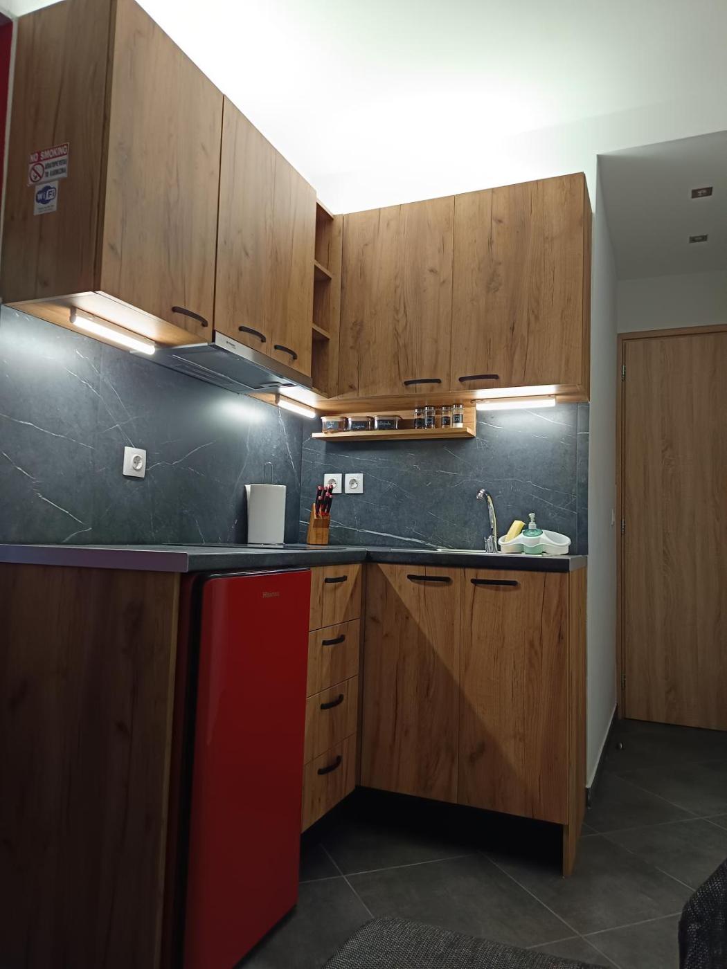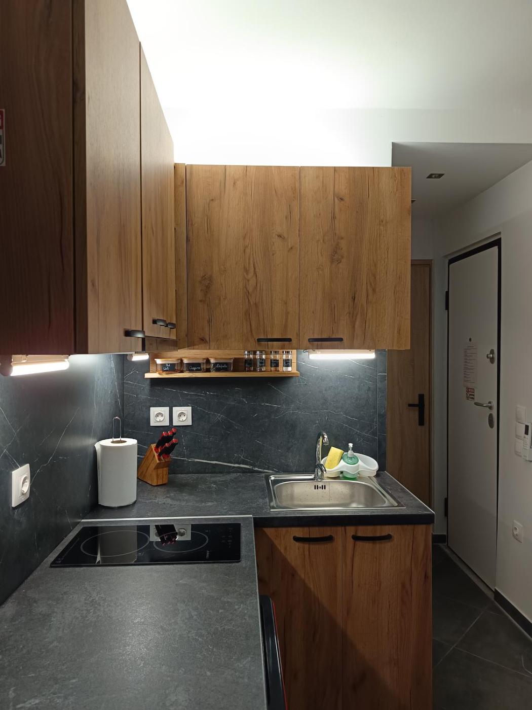 Studio Apartment. Featuring a private entrance, this air-conditioned apartment is comprised of 1 living room, 1 separate bedroom and 1 bathroom with a shower and a hairdryer. The well-fitted kitchen has a stovetop, a refrigerator, kitchenware and a tea and coffee maker. This apartment features soundproof walls, flat-screen TV, sea views, as well as winechampagne for guests. The unit offers 2 beds.