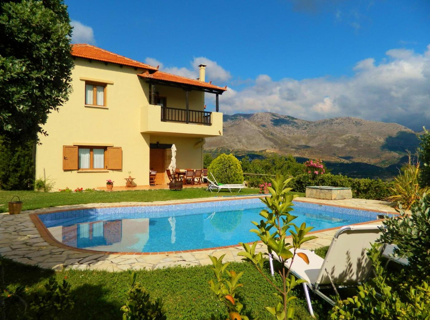 Three-Bedroom Villa with Private Pool Irini. Featuring a private pool with sun terrace, this air-conditioned and traditionally furnished, 3-bedroom villa opens to a patio and a balcony with Cretan Sea, garden and mountain views. Fitted with fireplace and beamed ceilings, it consists of a seating area with satellite TV and a kitchen with stove and dining area. A washing machine is provided and free Wi-Fi is available.