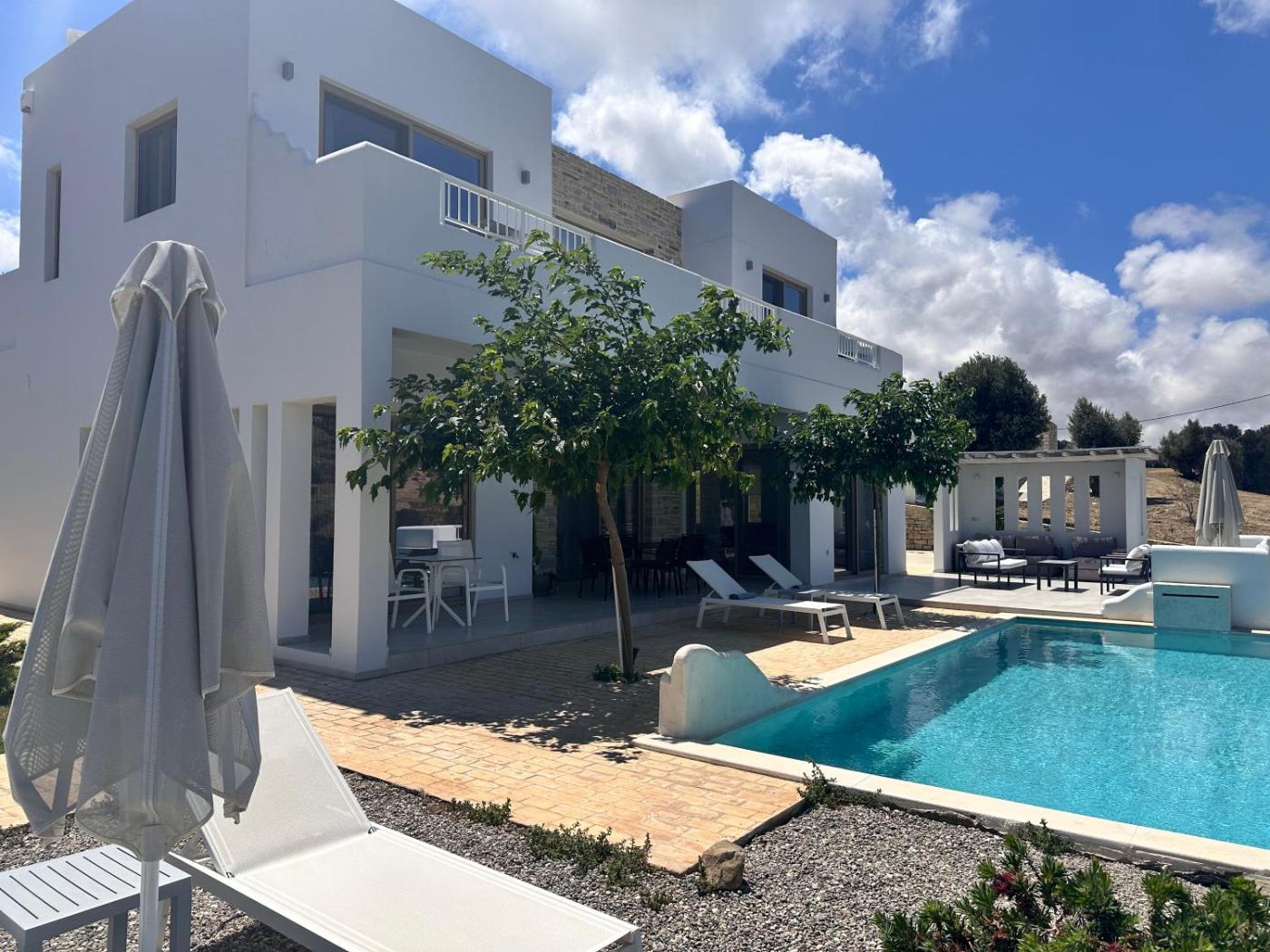 Three-Bedroom Villa. This villa features a pool with a view. Boasting a private entrance, this air-conditioned villa features a kitchen, 3 bedrooms and 4 bathrooms with a walk-in shower and a hairdryer. Guests will find a stovetop, a refrigerator, a dishwasher and an oven in the well-equipped kitchen. The villa also comes with a barbecue. Featuring a terrace with sea views, this villa also features a washing machine and a flat-screen TV with cable channels. The unit has 4 beds.