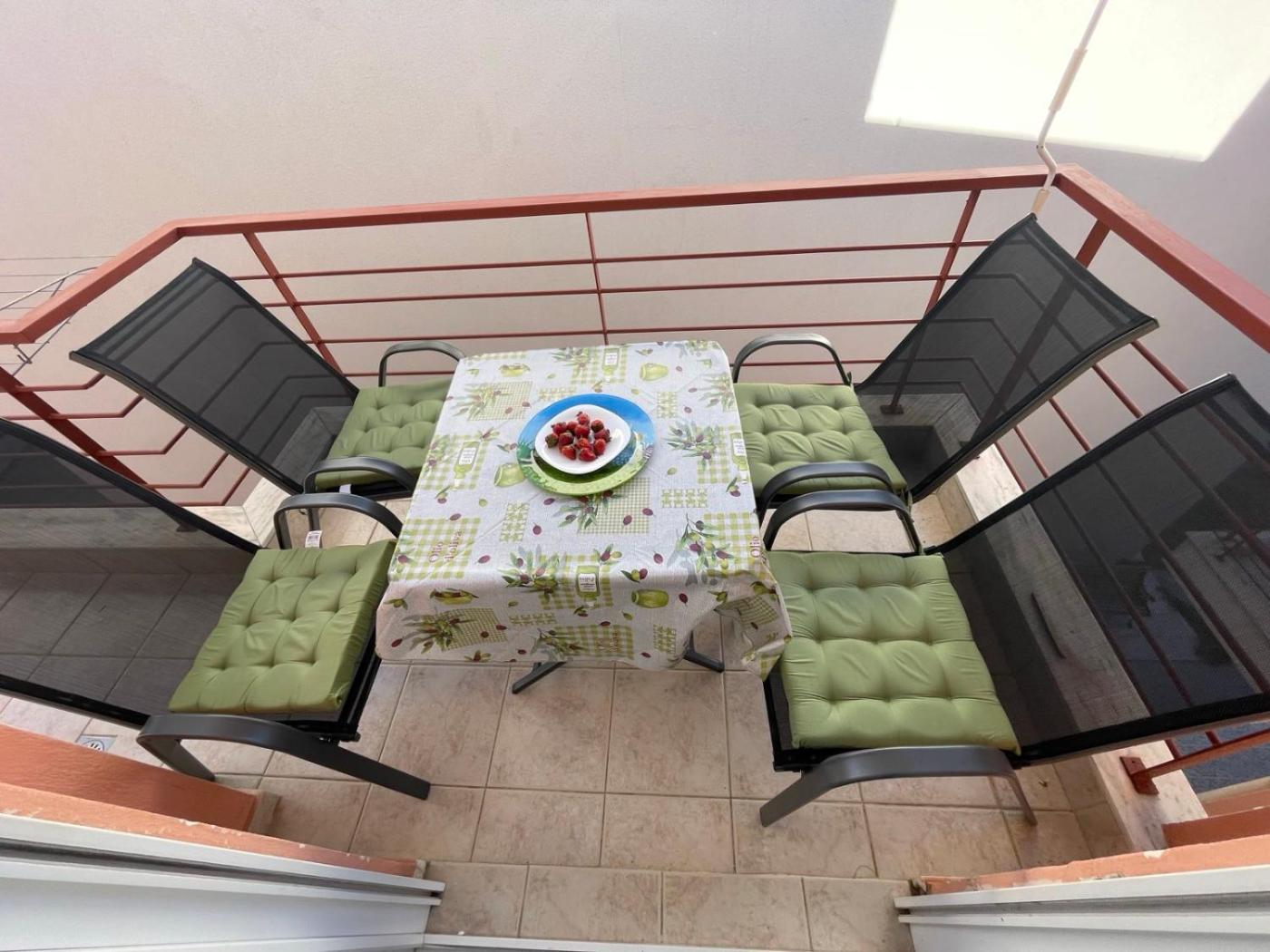 The holiday home with a balcony and sea views features 2 bedrooms, a living room, a flat-screen TV, an equipped kitchen with an oven and a toaster, and 1 bathroom with a bath. Towels and bed linen are featured in the holiday home. The accommodation is non-smoking.