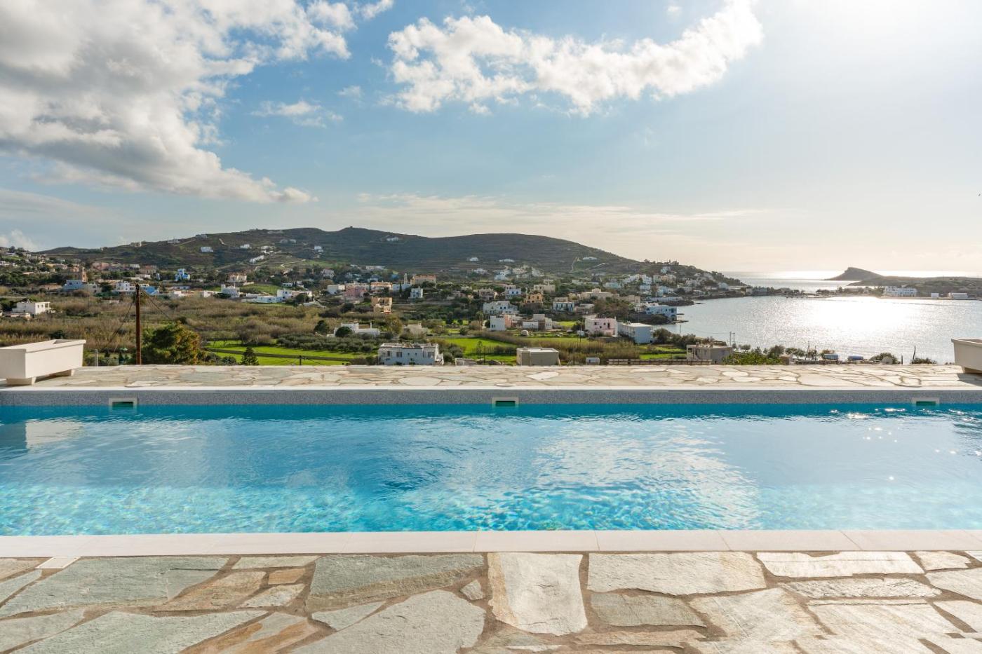 Set in Posidhonía, 400 metres from Voulgari Beach and 10 km from Saint Nicholas Church, Mont Rock villas 3 offers an outdoor swimming pool and air conditioning. This beachfront property offers access to free WiFi and free private parking. The property is non-smoking and is situated 8.8 km from Industrial Museum of Ermoupoli.