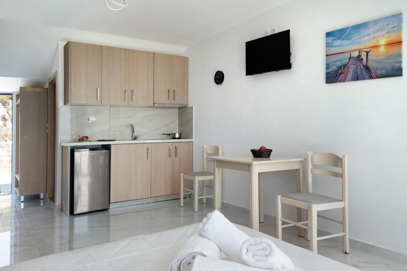 Superior Studio. The studios kitchen, which features kitchenware, is available for cooking and storing food. The studio offers air conditioning, an electric kettle, a balcony with sea views as well as a private bathroom featuring a shower. The unit offers 2 beds.