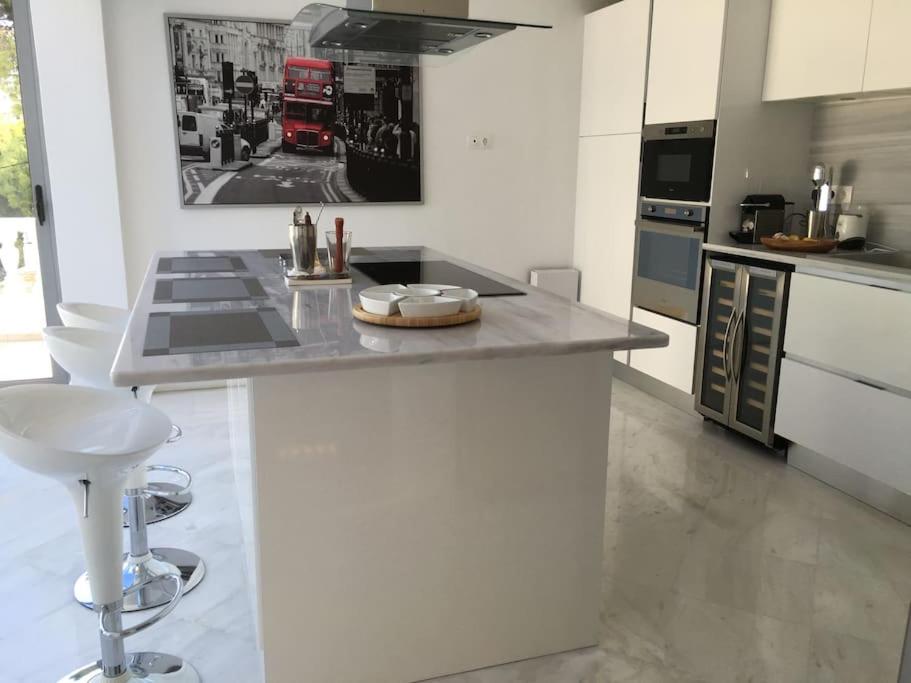 Three-Bedroom Villa. The pool with a view and fireplace are the special features of this villa. Featuring a private entrance, this air-conditioned villa is comprised of 2 living rooms, 3 separate bedrooms and 2 bathrooms with a bath and a shower. Guests will find a stovetop, a refrigerator, a dishwasher and kitchenware in the well-equipped kitchen. The villa also has a barbecue. The spacious villa offers a washing machine, a tea and coffee maker, a seating area, a flat-screen TV with streaming services, as well as sea views. The unit offers 4 beds.