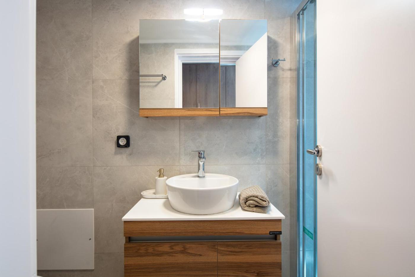 Two-Bedroom Apartment. Featuring a private entrance, this air-conditioned apartment consists of 1 living room, 2 separate bedrooms and 1 bathroom with a shower and a hairdryer. The fully equipped kitchen features a stovetop, a refrigerator, a dishwasher and kitchenware. The apartment provides a flat-screen TV with streaming services, a washing machine, soundproof walls, a tea and coffee maker as well as sea views. The unit offers 3 beds.