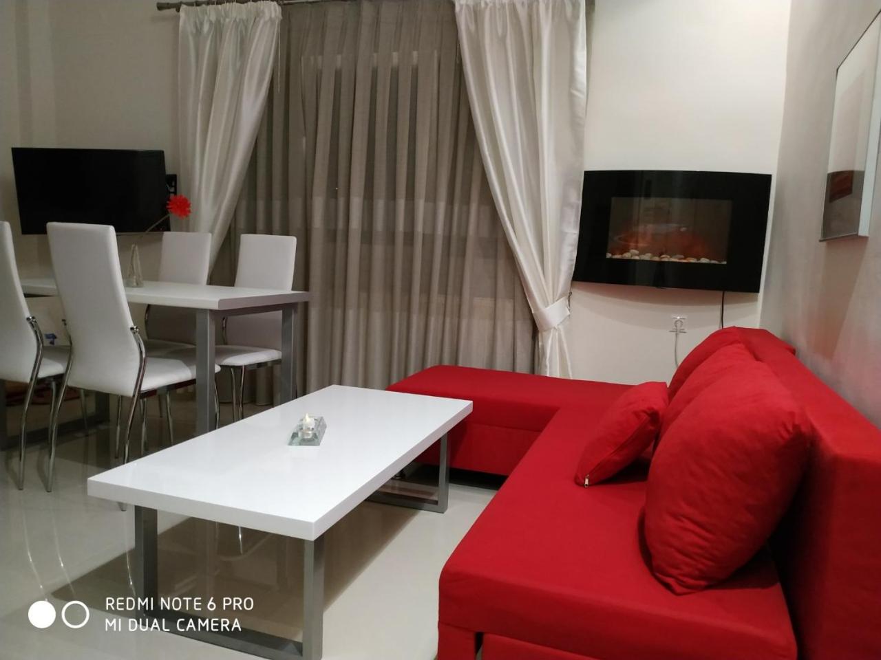 One-Bedroom Apartment. This apartments standout feature is the fireplace. This air-conditioned apartment includes 1 living room, 1 separate bedroom and 1 bathroom with a shower. The well-equipped kitchen has a stovetop, a refrigerator, kitchenware and an oven. The apartment offers a washing machine, soundproof walls, a seating area, a dining area and a flat-screen TV. The unit has 2 beds.