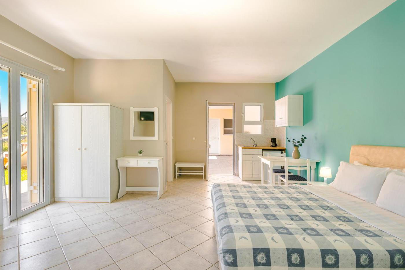 Studio with Pool View. Guests can make meals in the fully equipped kitchenette that has a stovetop, kitchenware and an electric kettle. The studio offers air conditioning, a minibar, a balcony with pool views as well as a private bathroom boasting a shower. The unit has 2 beds. ;