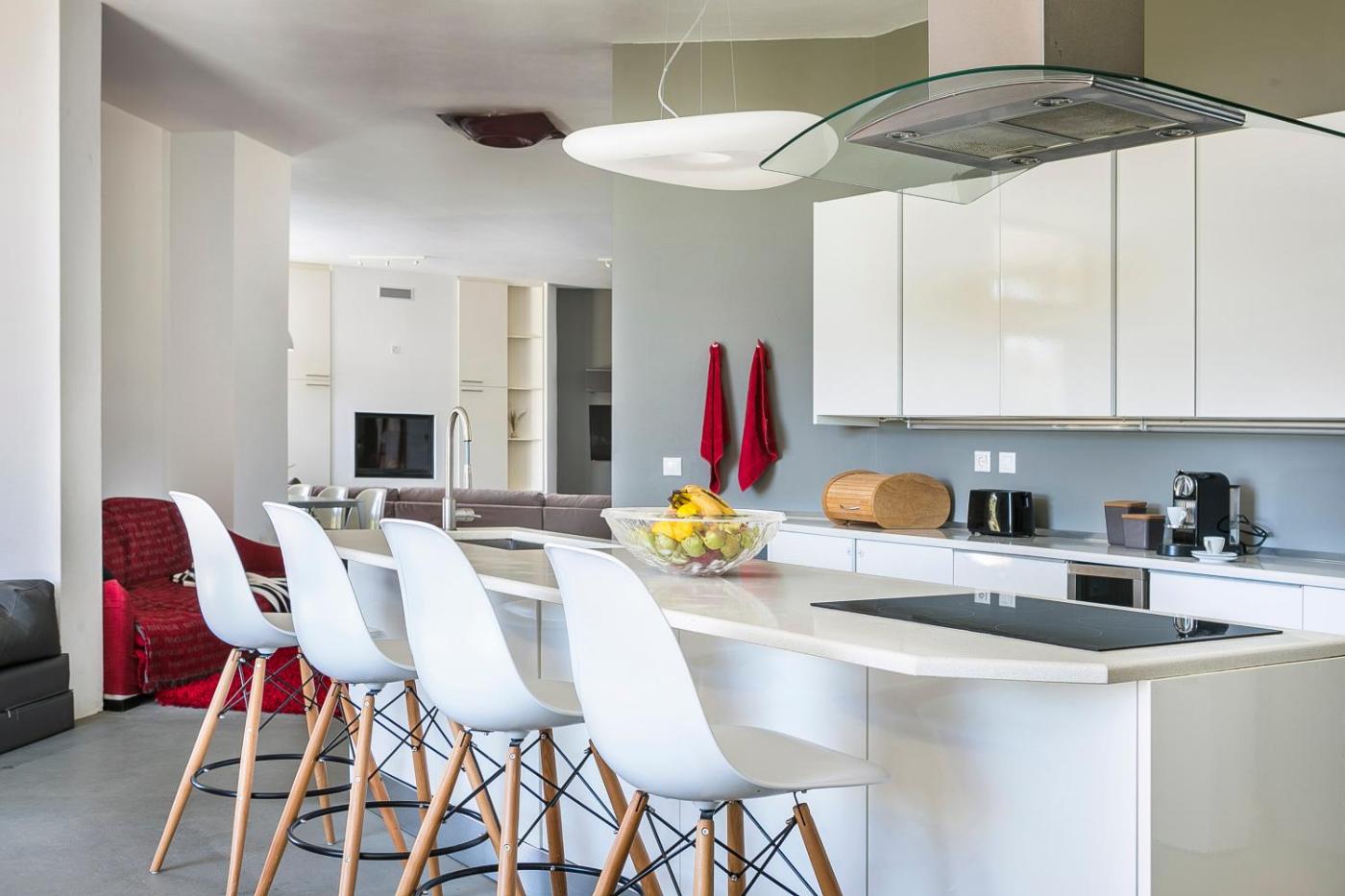 Villa. The pool with a view and fireplace are the special features of this villa. Featuring a private entrance, this air-conditioned villa consists of 1 living room, 4 separate bedrooms and 4 bathrooms with a walk-in shower and a bath. Guests will find a stovetop, a refrigerator, a dishwasher and kitchenware in the kitchen. The villa also offers a barbecue. The spacious villa provides a washing machine, soundproof walls, a tea and coffee maker, a flat-screen TV with streaming services, as well as garden views. The unit offers 6 beds.