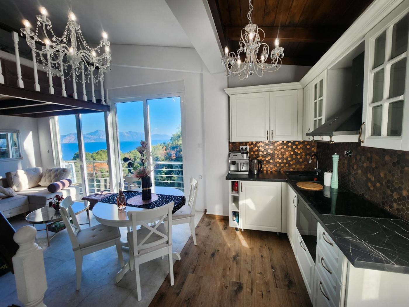 Deluxe Suite with Sea View. This suite features a pool with a view and a fireplace. This air-conditioned suite features 1 living room, 2 separate bedrooms and 1 bathroom with a bath. Guests will find a stovetop, a refrigerator, kitchenware and a microwave in the well-fitted kitchen. The suite also comes with a barbecue. Boasting a terrace with sea views, this suite also features a washing machine and a flat-screen TV with cable channels. The unit has 3 beds. ;