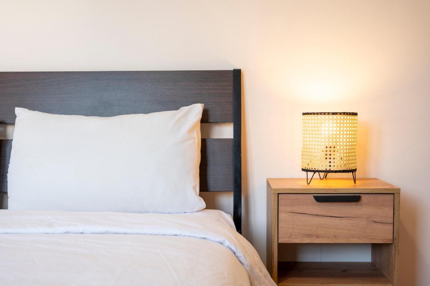 Two-Bedroom Apartment. This spacious apartment comprises 1 living room, 2 separate bedrooms and 1 bathroom with a walk-in shower and free toiletries. Meals can be prepared in the well-fitted kitchen, which comes with a stovetop, a refrigerator, kitchenware and an oven. The air-conditioned apartment provides a flat-screen TV, a washing machine, a tea and coffee maker, a seating area as well as city views. The unit offers 3 beds.