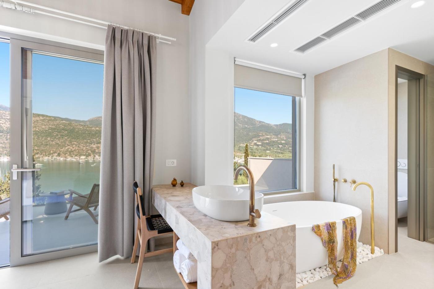 Two-Bedroom Villa. The pool with a view and fireplace are the special features of this villa. Boasting a private entrance, this air-conditioned villa includes 1 living room, 2 separate bedrooms and 3 bathrooms with a bath and a shower. In the fully equipped kitchen, guests will find a stovetop, a refrigerator, a dishwasher and kitchenware. The spacious villa offers a flat-screen TV with streaming services, a washing machine, a tea and coffee maker, a seating area as well as sea views. The unit has 3 beds.